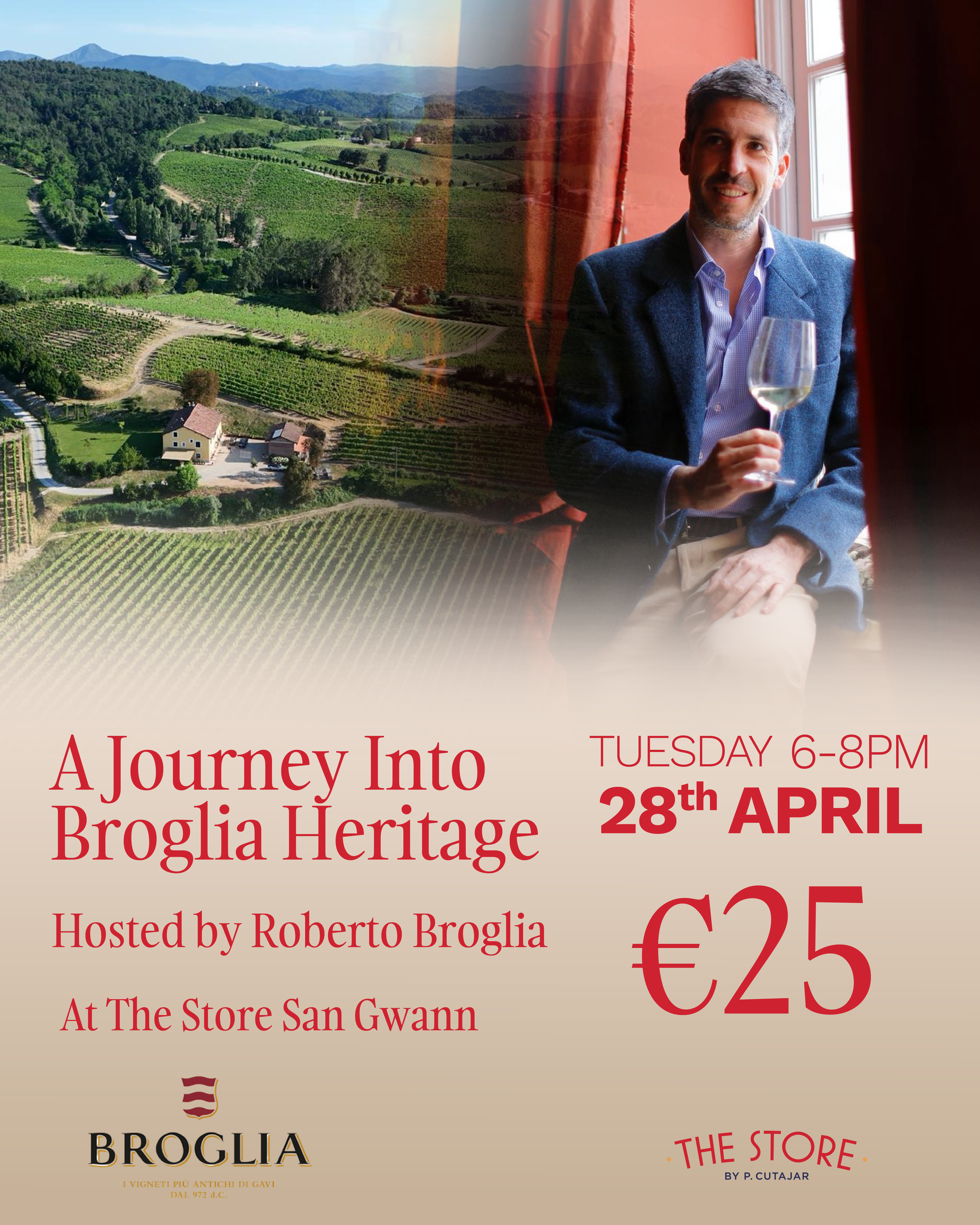 Join us for a refined tasting experience celebrating the heritage and craftsmanship of Broglia at The Store. Guided by Roberto Broglia, you’ll explore six distinctive wines and uncover their aromas, tasting notes, and the stories behind each bottle.