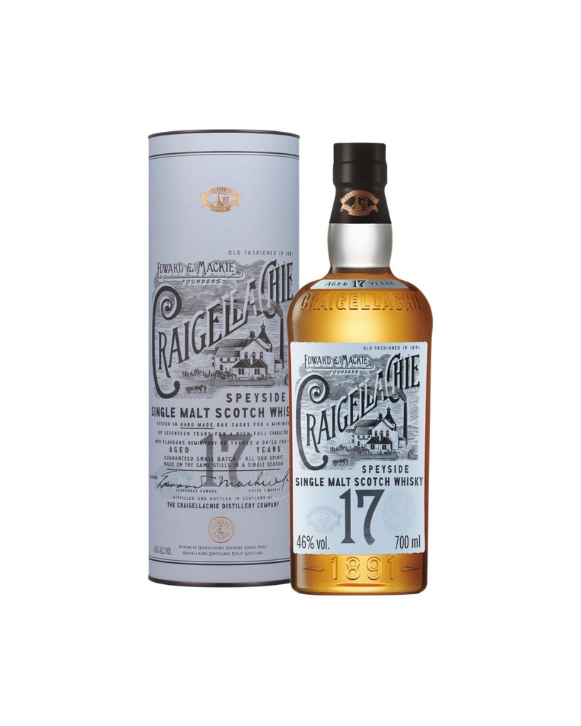 One of three malts in the Craigellachie lineup launched in 2014, this 17-year-old single malt Scotch whisky exemplifies the bold, robust character of the distillery's production. Smooth and mellow, the aroma opens with vanilla and rich, silky notes of exotic fruits, dried pineapples and a hint of smoky liquorice.