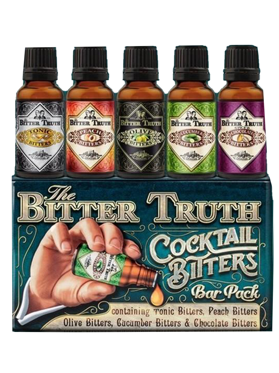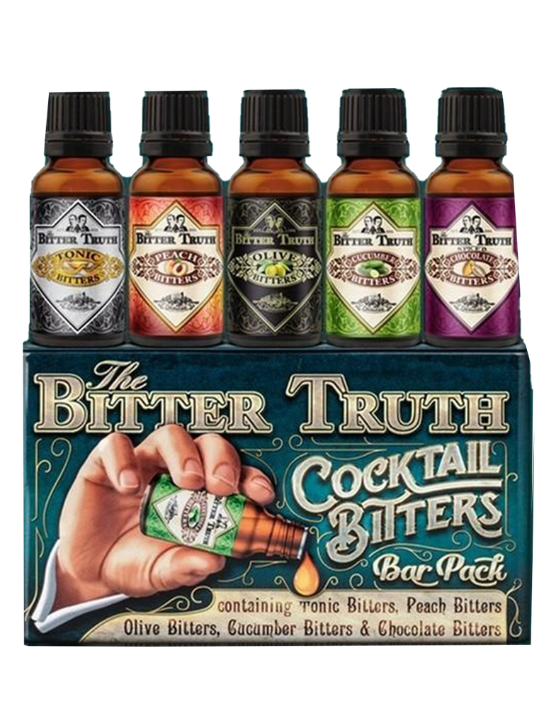 The Bitter Truth Cocktail Bitters Bar Pack comes in a beautiful metal box and contains 5 x 20ml brown glass bottles of The Bitter Truth Cocktail Bitters modern flavors.